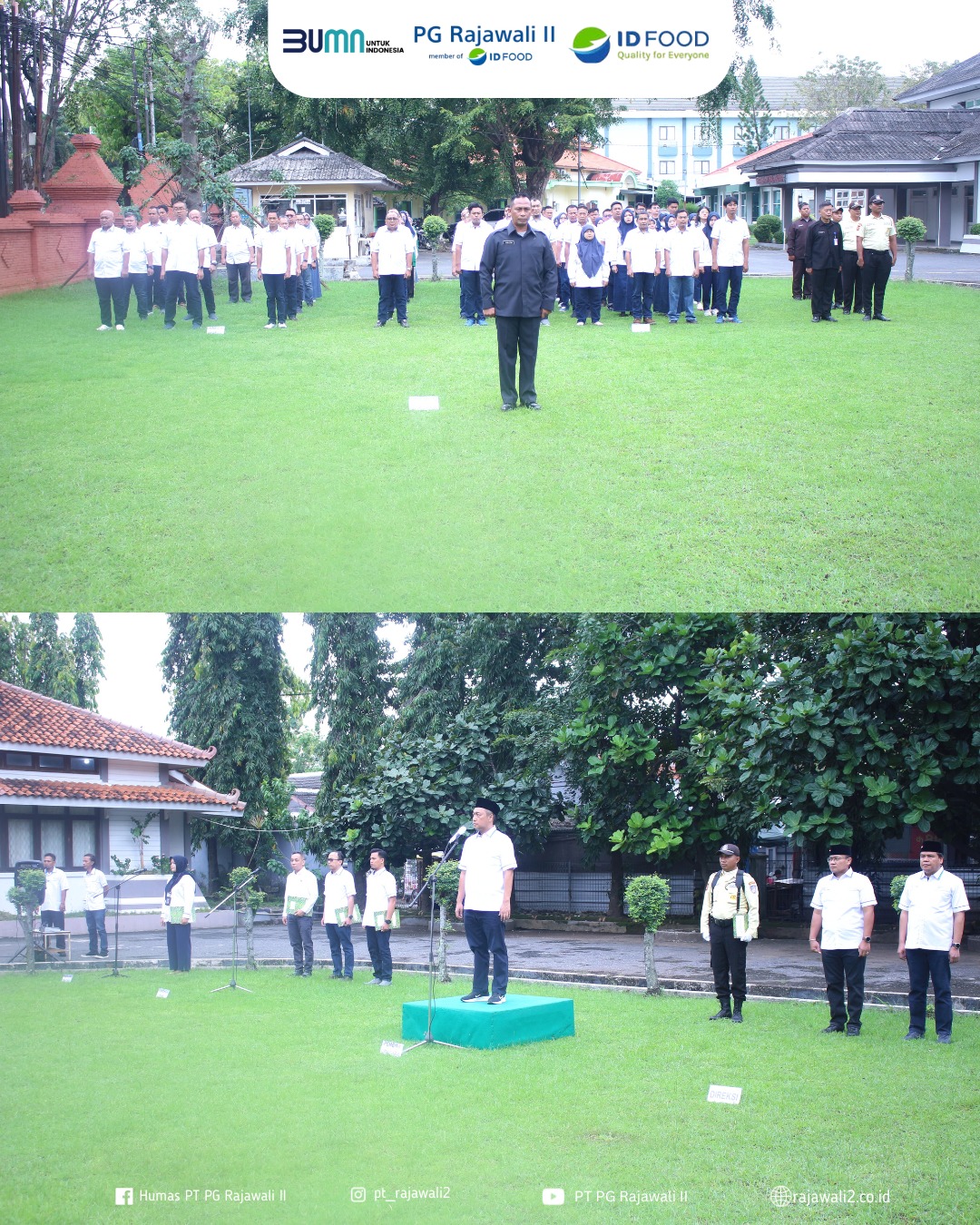 Cirebon, 20 Mei 2025 — Dalam rangka memperingati Hari Kebangkitan Nasional (Harkitnas) ke-117, PT PG Rajawali II menyelenggarakan upacara bendera yang berlangsung khidmat di halaman depan Kantor Direksi pada Selasa, 20 Mei 2025. Upacara ini dipimpin langsung oleh Direktur Utama PT PG Rajawali II, Ardian Wijanarko, dan diikuti oleh seluruh karyawan dan karyawati perusahaan.